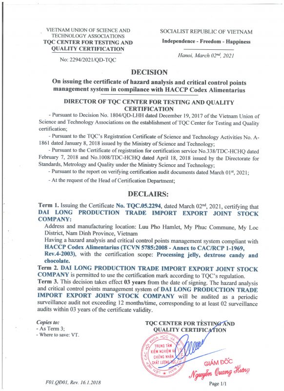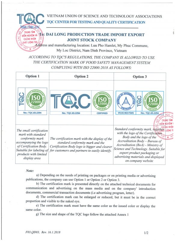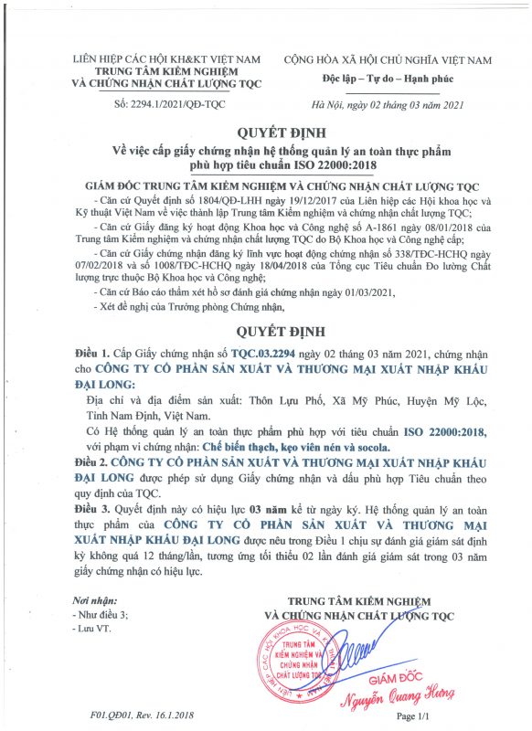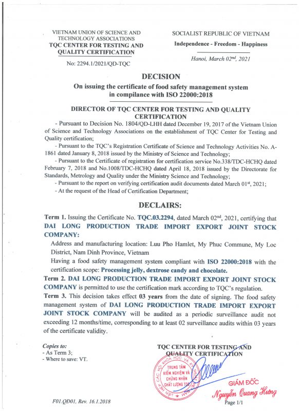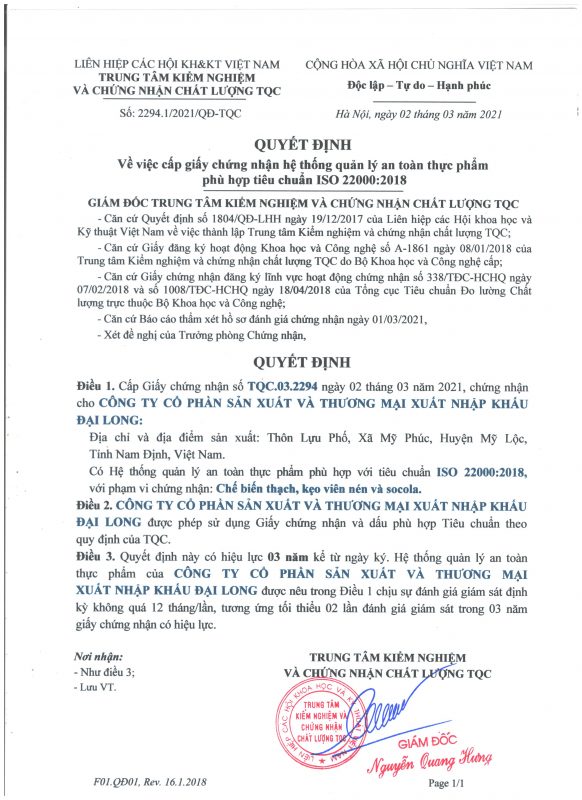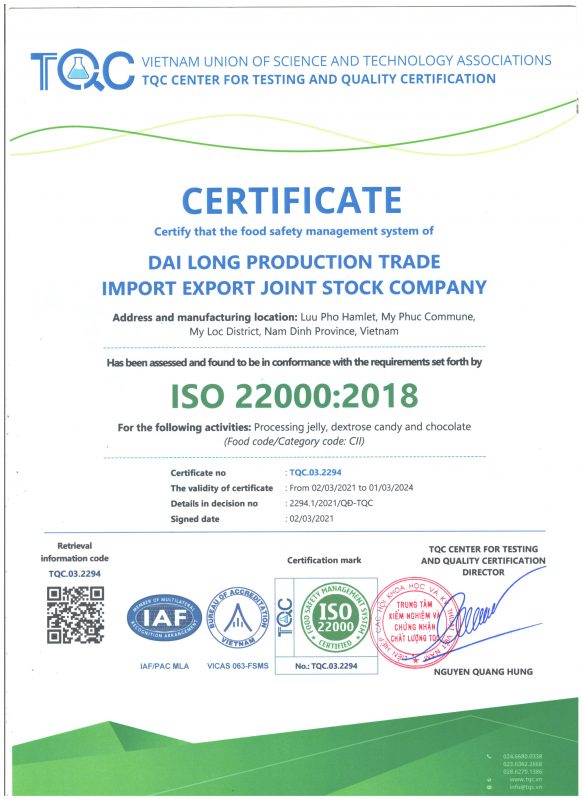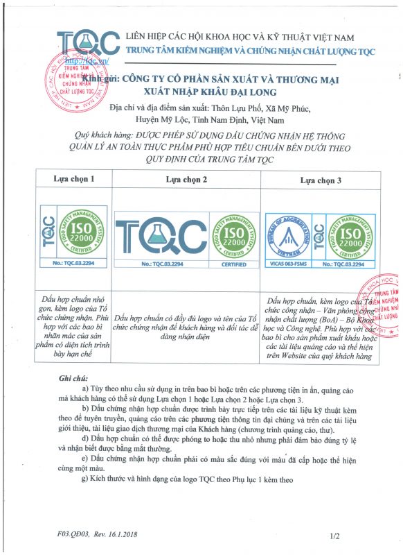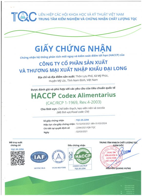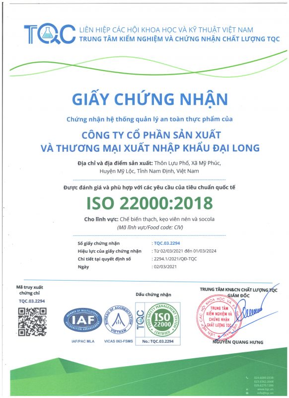 Công ty cổ phần Sản xuất & Thương mại Xuất nhập khẩu Đại Long trân trọng cảm ơn Quý Khách hàng, Đối tác, Đại lý đã và đang đồng hành cùng chúng tôi để đưa nguồn thực phẩm an toàn & chất lượng đến gần hơn với người dùng Việt. Tự hào là đơn vị có nguồn cung ứng đa dạng các sản phẩm chất lượng cao và có nguồn gốc xuất sứ rõ ràng; Chúng tôi có thể cung cấp sản lượng ổn định với giá cạnh tranh nhất nhì thị trường cho khách hàng sỉ & đại lý. Song hành với sự phát triển bền vững của Sỉ & Đại lý, Đại Long có nhiều chính sách hợp tác phù hợp với đa dạng nhu cầu của Khách hàng.
