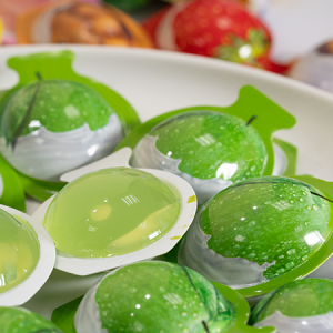 Kẹo thạch giòn dai sần sật, mang hương vị trái cây, là món ăn vặt thơm ngon, thanh mát, giải nhiệt vào những ngày nóng bức. Kẹo dễ ăn mang lại cảm giác ngon miệng nên được cả người lớn và trẻ em đều yêu thích, thích hợp dùng để đãi tiệc liên hoan, sinh nhật.
